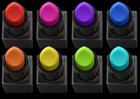 Women beauty products, luxury fashion and makeup concept with a row of lipstick tubes in a line on dark background with dramatic lighting and copy space