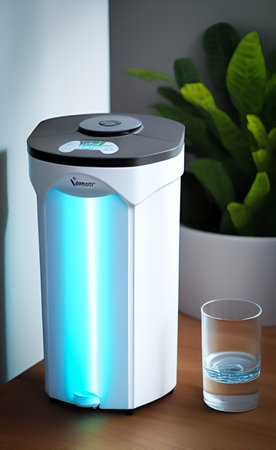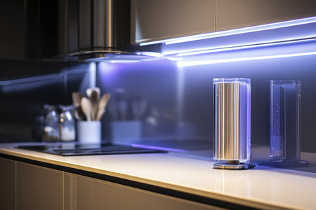 A Cutting Edge Sterilization Device is Seamlessly Integrated Into a Contemporary Kitchen, Enhanced by a Stunning, Vibrant Lighting Design, Showcasing the Potential of Generative AI Technology