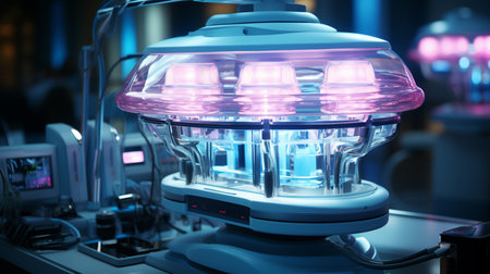 Modern medical equipment with digital display in high-tech healthcare setting.