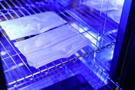 UV light sterilization of face mask to disinfection. COVID-19 prevention concept. ultra-violet sterilization and disinfection.