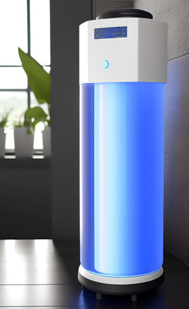 This image features a modern heating device designed for home use, showcasing sleek lines and vibrant light indicators for efficient temperature control.