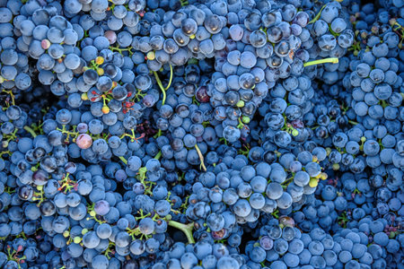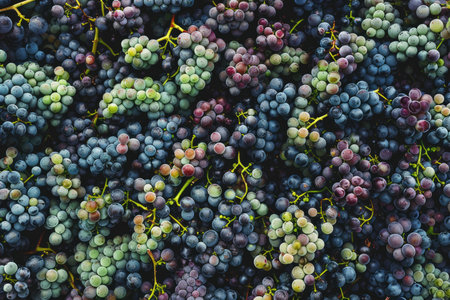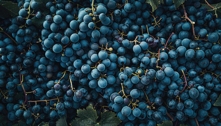 close-up shot of ripe grapes prior to crushing process, created with generative ai