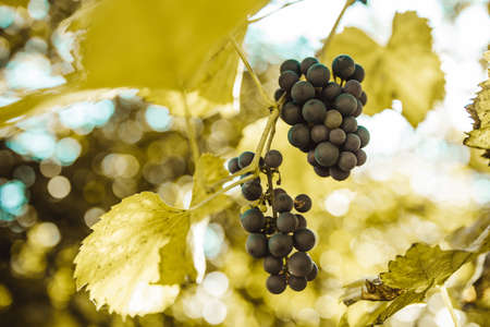 Ripe red wine grapes in a vineyard. Selective focus. Toned.