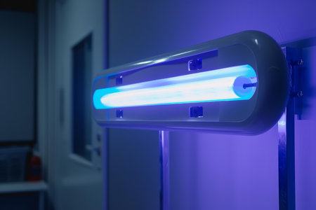 Bright ultraviolet lights emit a purifying glow, illuminating a sterile environment ideal for pathogen elimination and enhanced hygiene practices.