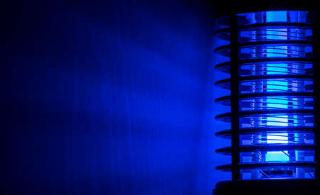 Mosquito lamp at work for the extermination of insects on cafe terraces. Background with selective focus and blurred background