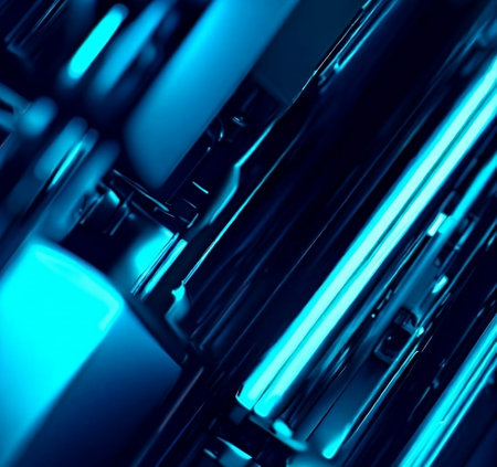 Futuristic blue neon lights in symmetrical mechanical pattern