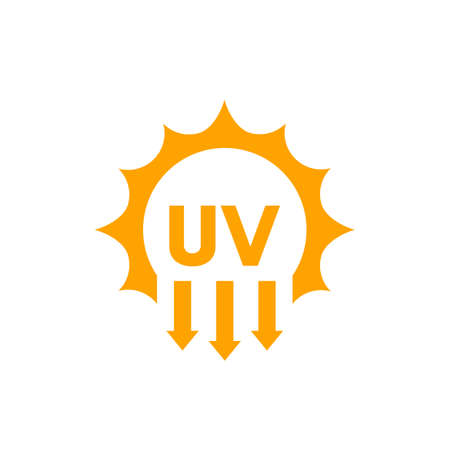 Asian woman in sun hat and sunglasses smiling on beach under bright sunlight with UV protection graphics, concept of summer vacation, skincare, and sun safety. Concept of beauty, health, cosmetic.