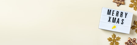 Christmas concept, xmas background with cookies, creative flat lay, banner