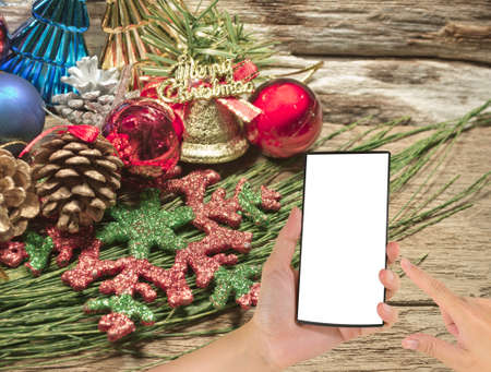 Merry Christmas banner concept with cellphone turned down