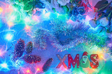 Christmas decoration, Christmas and New Year holidays background, winter season with Christmas ornaments and blurred lights
