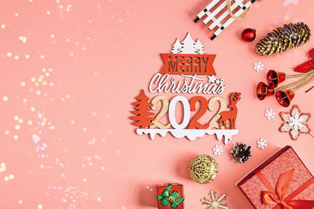 concept, christmas layout 2021 on pink background, flatley, copy space