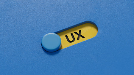 word ux with slide switch.close up of slide switch,Business Concept.3D rendering on blue background.