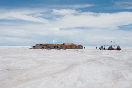 Uyuni Salt Flats - July 20, 2017: Tourist at the Uyuni Salt Flats, Bolivia