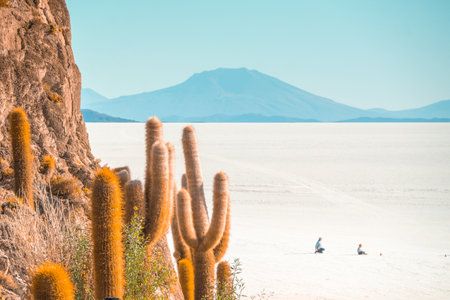 Cactus island in the salar de uyuni in the bolivian altiplano