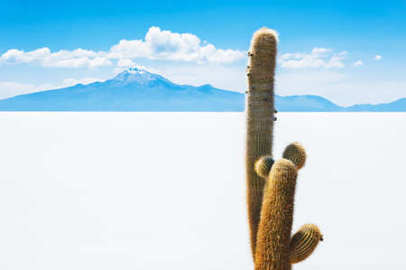 Big cactus on Incahuasi island, salt flat Salar de Uyuni, Altiplano, Bolivia