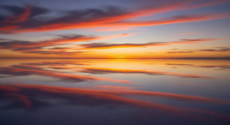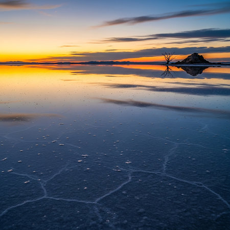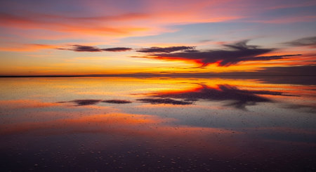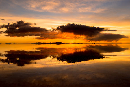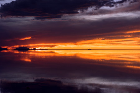 Dramatic sunrise over Uyuni Salt Flats in Bolivia, South America.