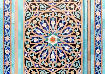 Oriental patterns made of tiles at Turkistan mausoleum, Kazakhstan