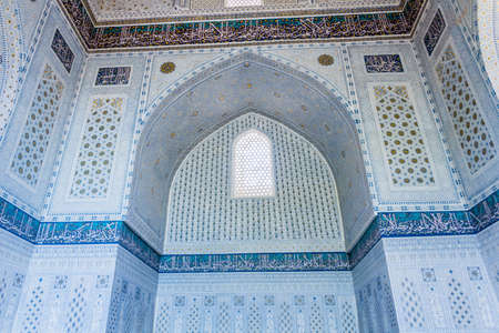SAMARKAND, UZBEKISTAN: APRIL 28, 2018: Interior of Bibi-Khanym Mosque in Samarkand, Uzbekistan