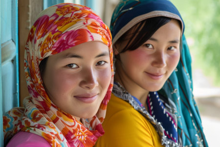 Portrait of two beautiful Asian Muslim women wearing headscarf