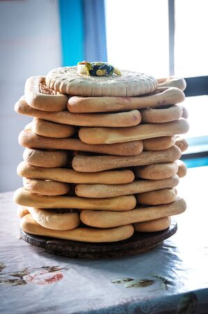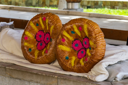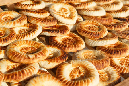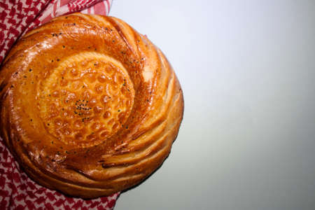 Bread and Bakery. The typical traditional uzbek round shape bread.