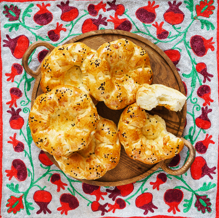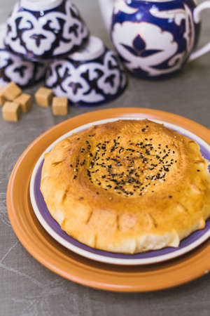 traditional Uzbek bread. Lepeshka - oriental style bread. Eastern cuisine