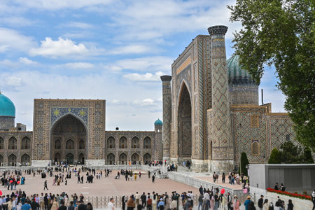Samarkand, Uzbekistan - September, 2018: The Registan square in Samarkand, Uzbekistan. Registan is famous for its beautiful architecture and colorful mosaic decoration.