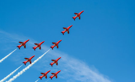 The red arrows performing maneuvers over blue sky in england