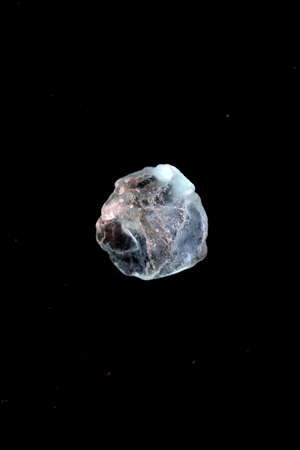 Shiny luminous blue sylvinite rock salt mineral crystal from Soligorsk, Belarus. A photo isolated on black. Geology mineralogy websites, stone collection catalog, Natural Science museum wall chart.