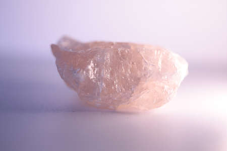sample of raw iceland spar mineral on white marble background close up
