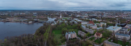 Aerial view of Vyborg city panorama, Russia. Beautiful summer landscape.