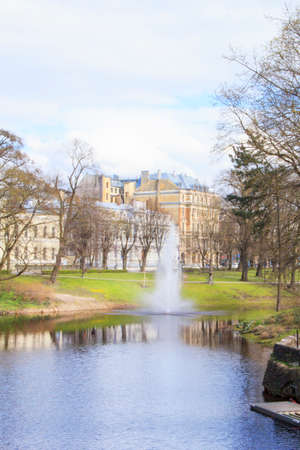 A beautiful view of the Riga Canal in Vermanes Garden, Riga, Latvia