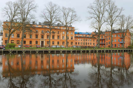 Uppsala, Sweden - April 26, 2011: View to the historical buildings reflecting in the water in Uppsala, Sweden.