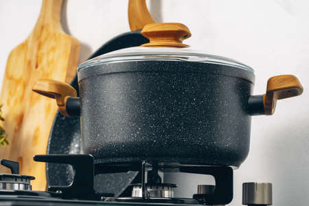 Kitchen pot on gas stove in the kitchen