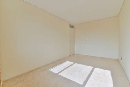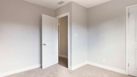 Empty room with carpet floor and cream walls. Contemporary home interior.