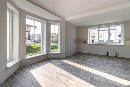 Unfinished apartment interior in a morning
