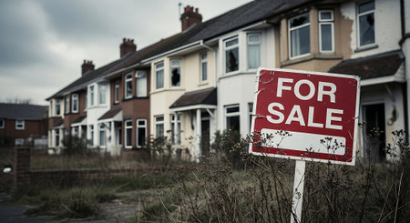 For sale sign in front of a row of houses in a row