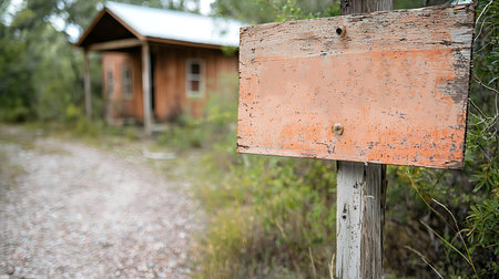 A sold sign in front of a house on gravel road, AI