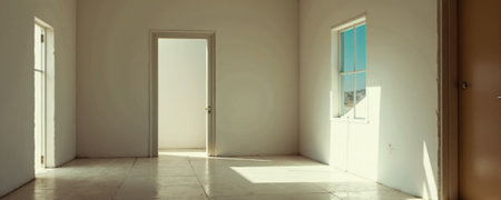 Pristine panorama: White spacious apartment, bathed in light, waiting for minimalist touch.
