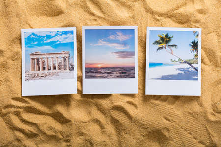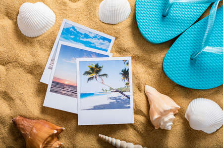 High Angle View Of Photos Of Holidays On Sandy Beach