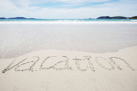 Word Vacation on a sand on a tropical seashore