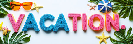 Vibrant VACATION Lettering Crafted from Lush Tropical Elements, Studio Shot on White