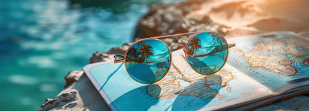 A pair of sunglasses lying on a map, creating a unique travel-themed visual.