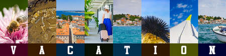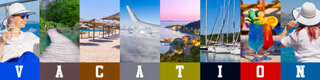 Vacation collage banner. collection of travel photos. Summer travel photography collage banner
