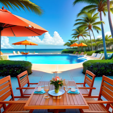Generative AI : breakfast on outdoor tableMorning and breakfast on the sea beachHoliday EventLunchParty Social EventPicnic TableSenior Adult