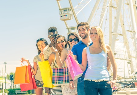 Group of friends holding shopping bags