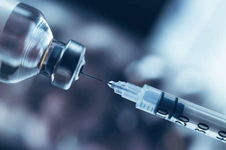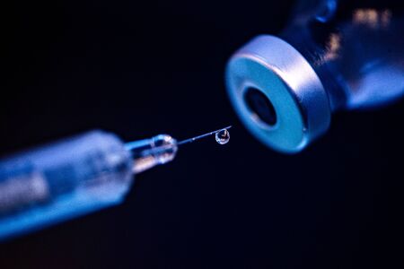 Coronavirus Covid-19 Protection and Vaccine. Medication drug needle syringe close up photo. Medication drug needle syringe