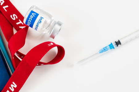 Vaccine on a white background, close-up. Concept medicine, pandemic.