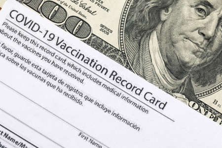 Covid-19 vaccination card and cash money