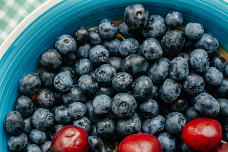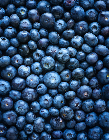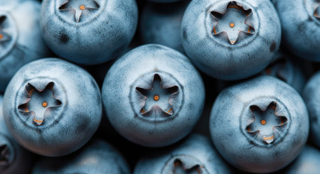 Close-up texture of fresh blueberries with a juicy. Ripe. And delicious appearance against a natural blue background. Showcasing their organic. Healthy. And antioxidant-rich qualities. Market