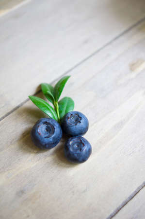 Blueberries ripe on wooden table background. Harvesting concept. Top view. Flat lay. Close up. Selective soft focus. Shallow depth of field. Text copy space.